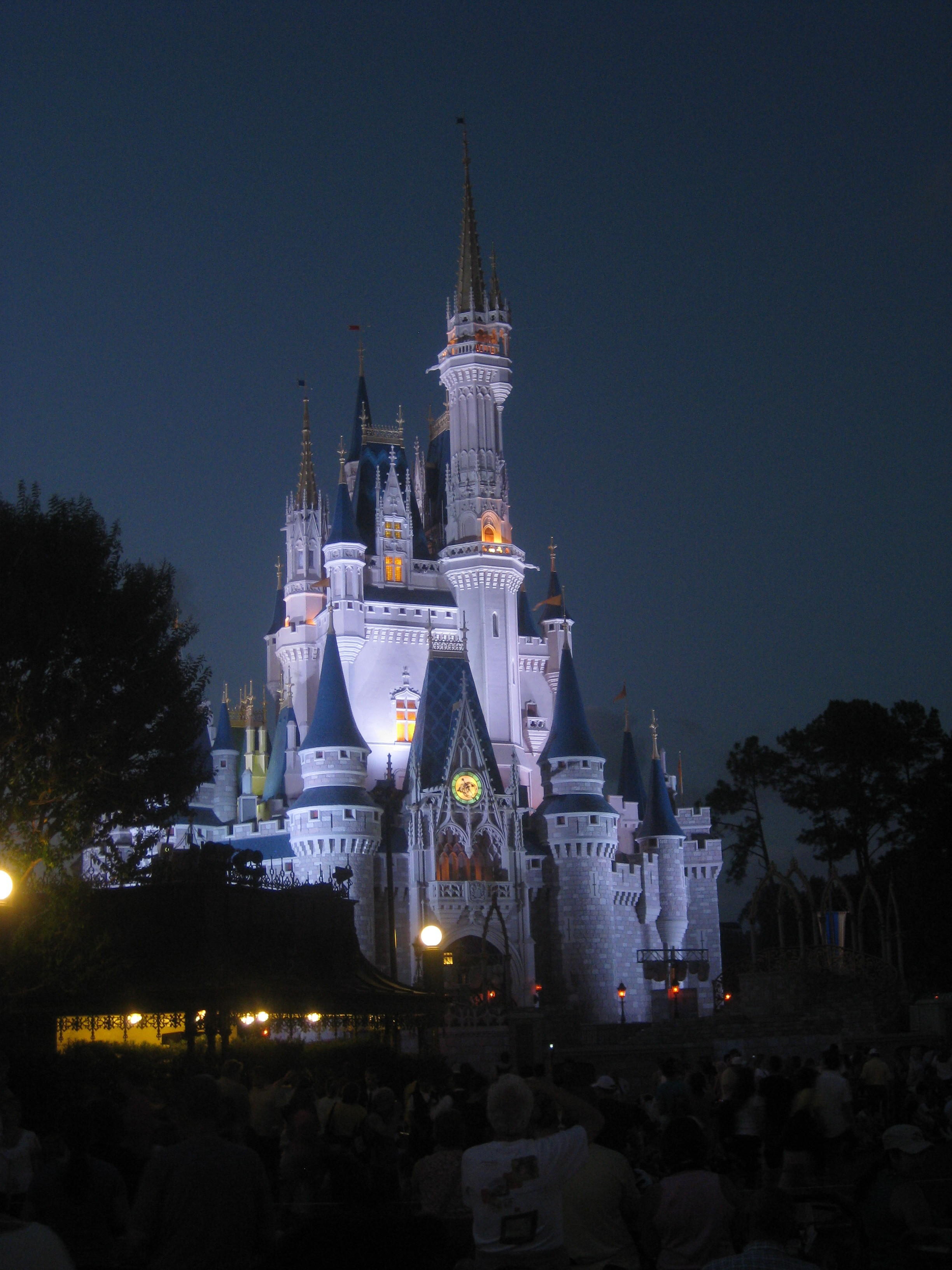 Several shots of Cinderella's castle as its getting dark.
