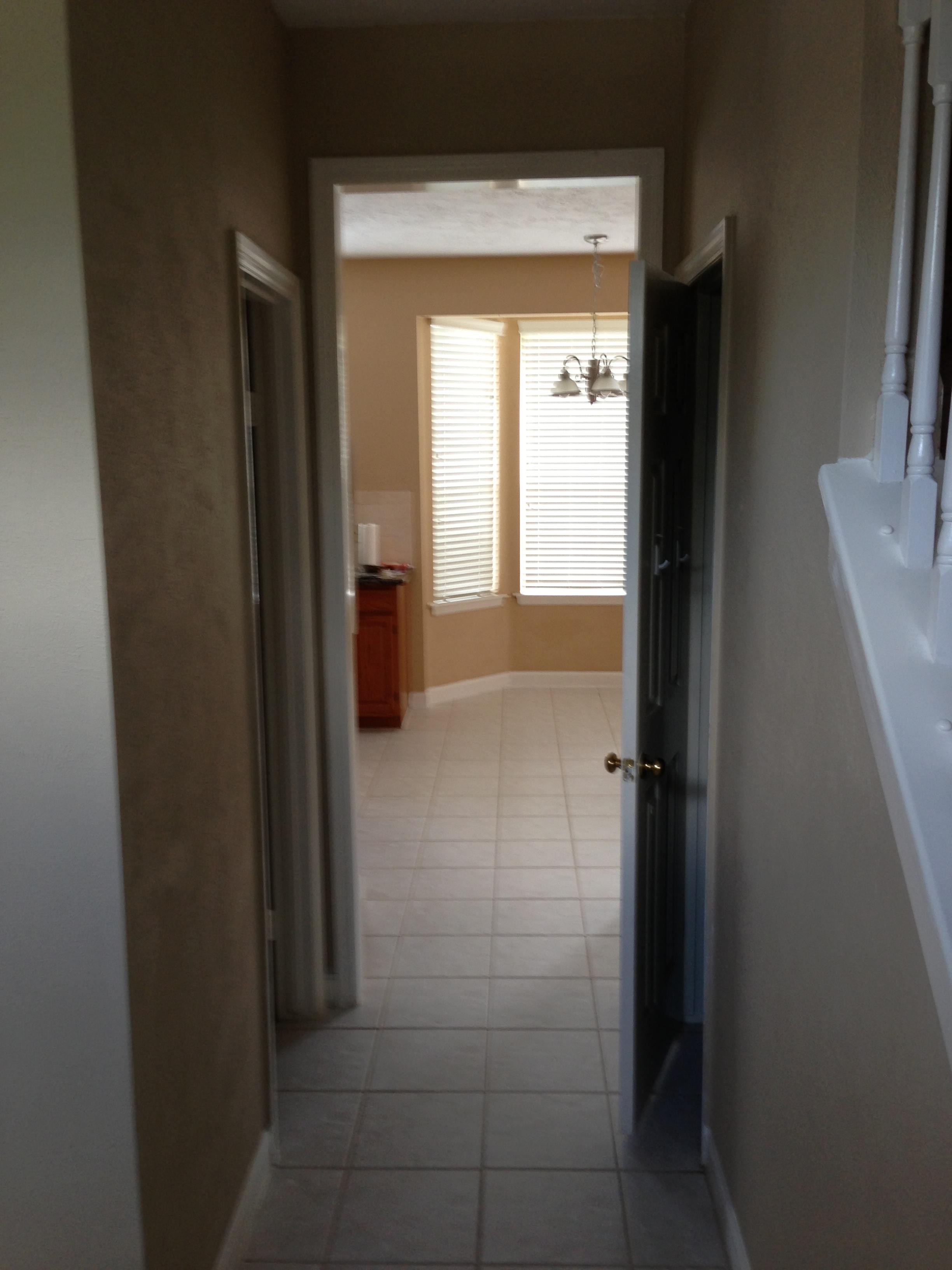 Looking from the front door into the hallway into the kitchen