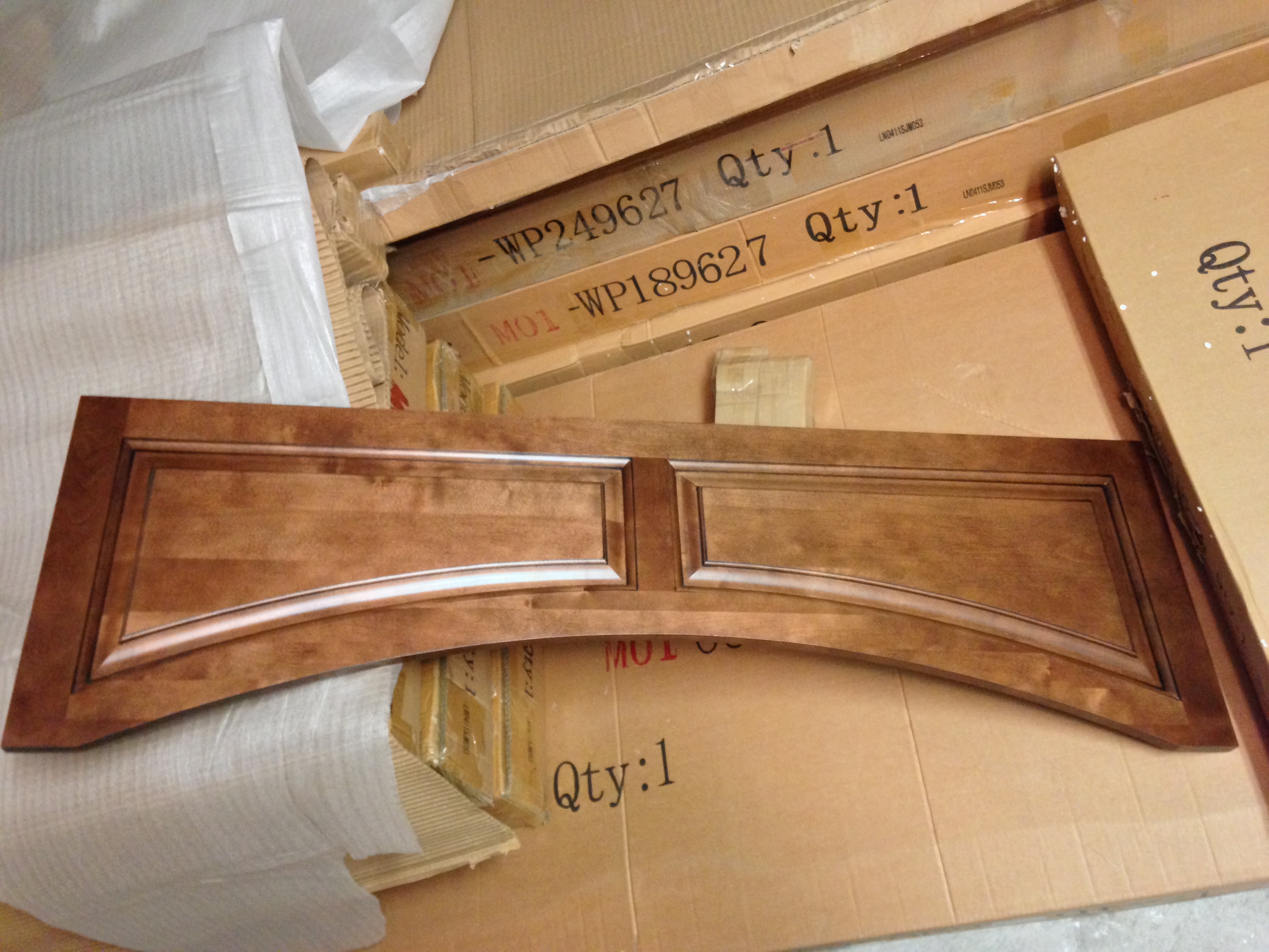 Everything had to be inspected for damage. This is the valence that will go above the sink.
