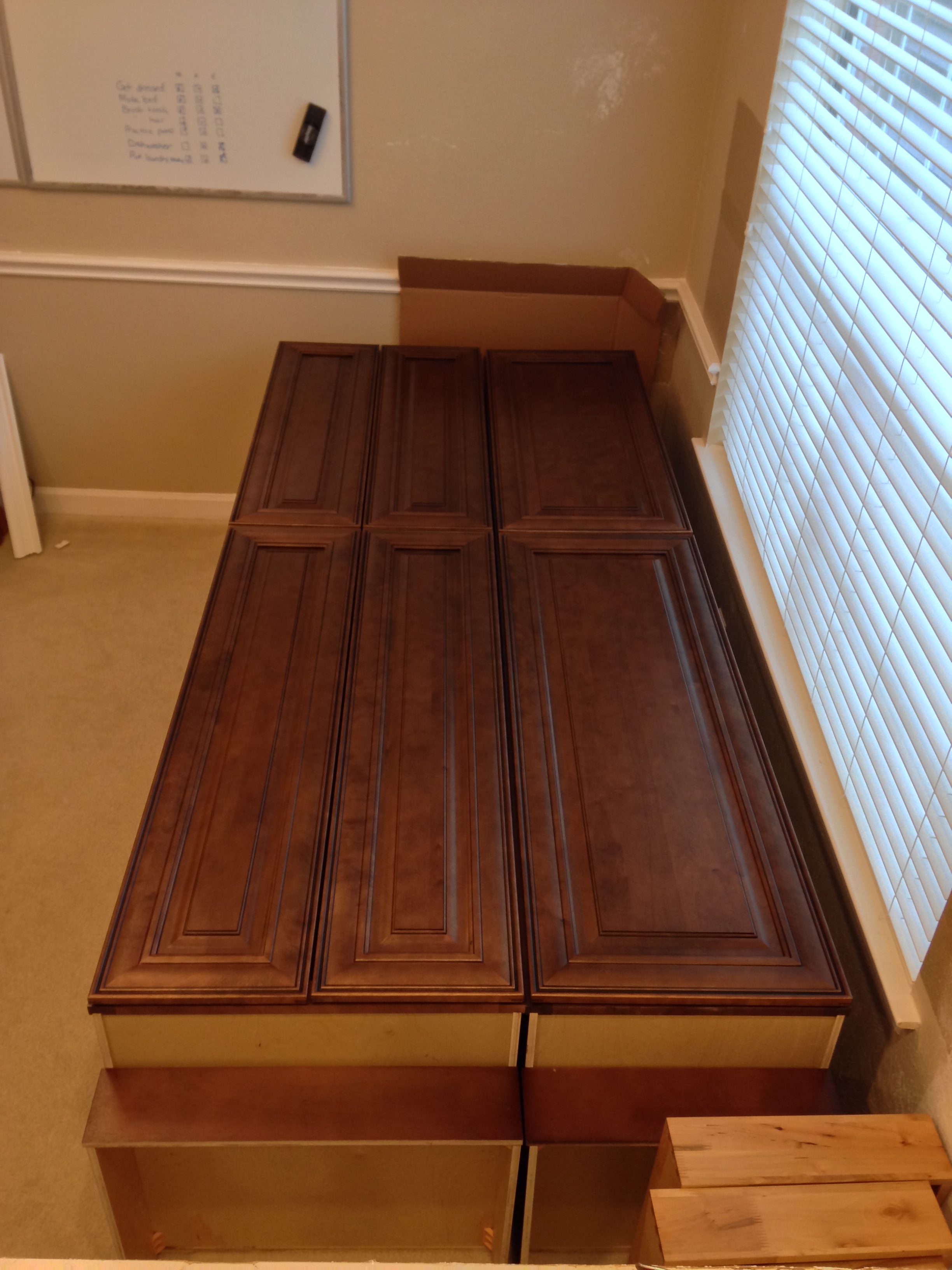The first two pantry cabinets completed - laying on the floor in the dining room.
