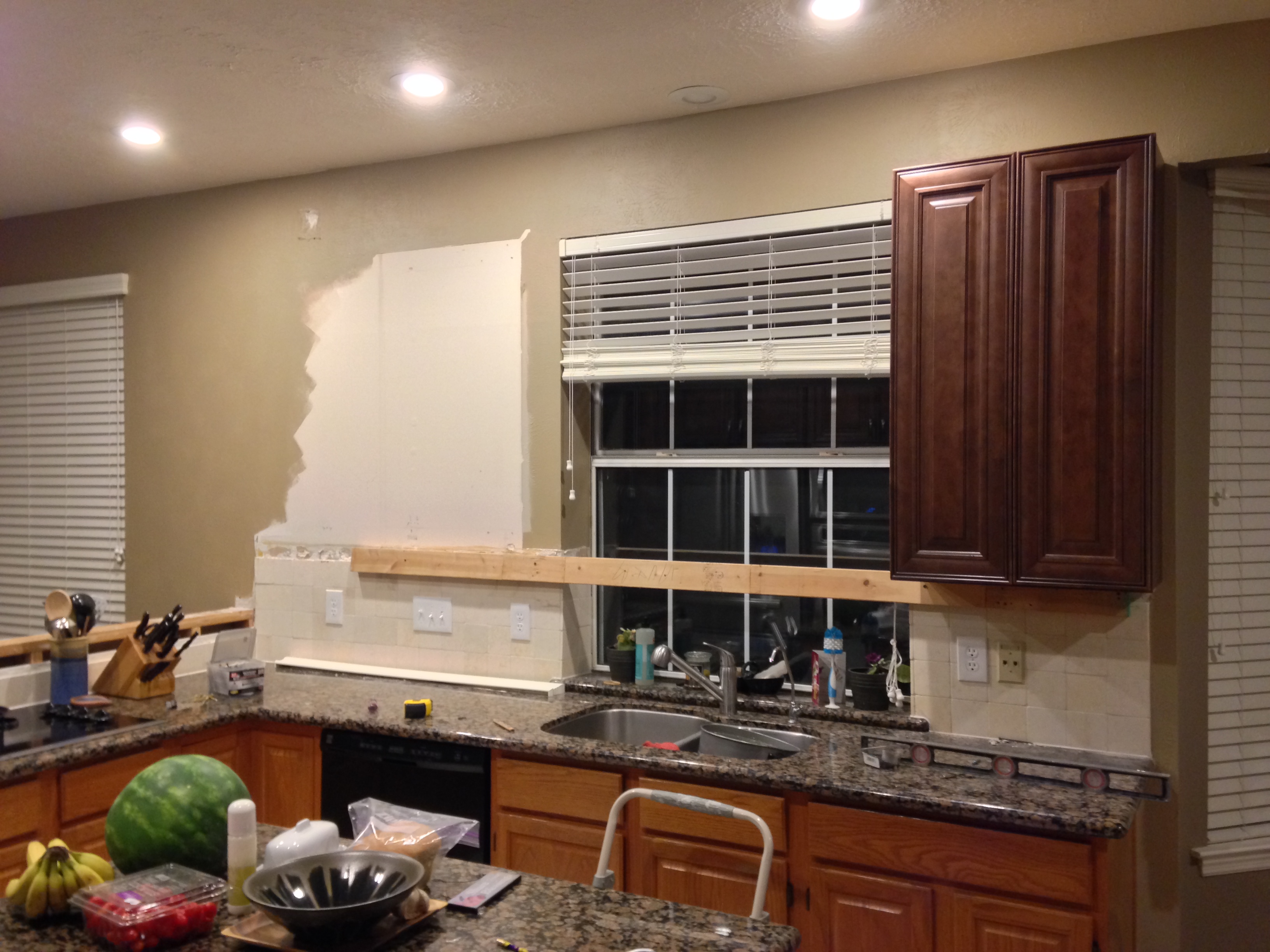 First wall cabinet installed.