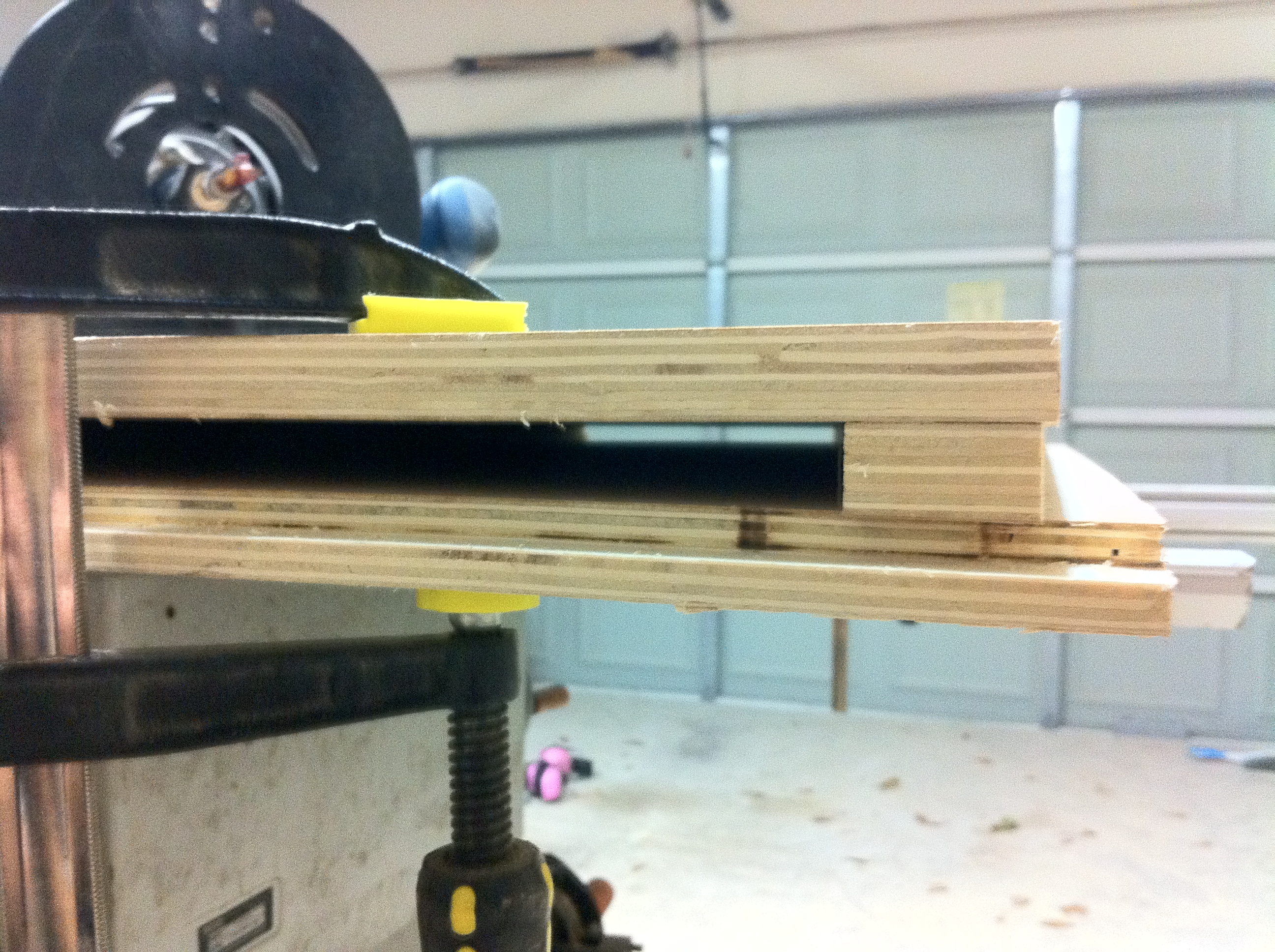 My template bit is rather long so I needed a spacer between the bottom piece of the case and side pieces that were clamped to it.