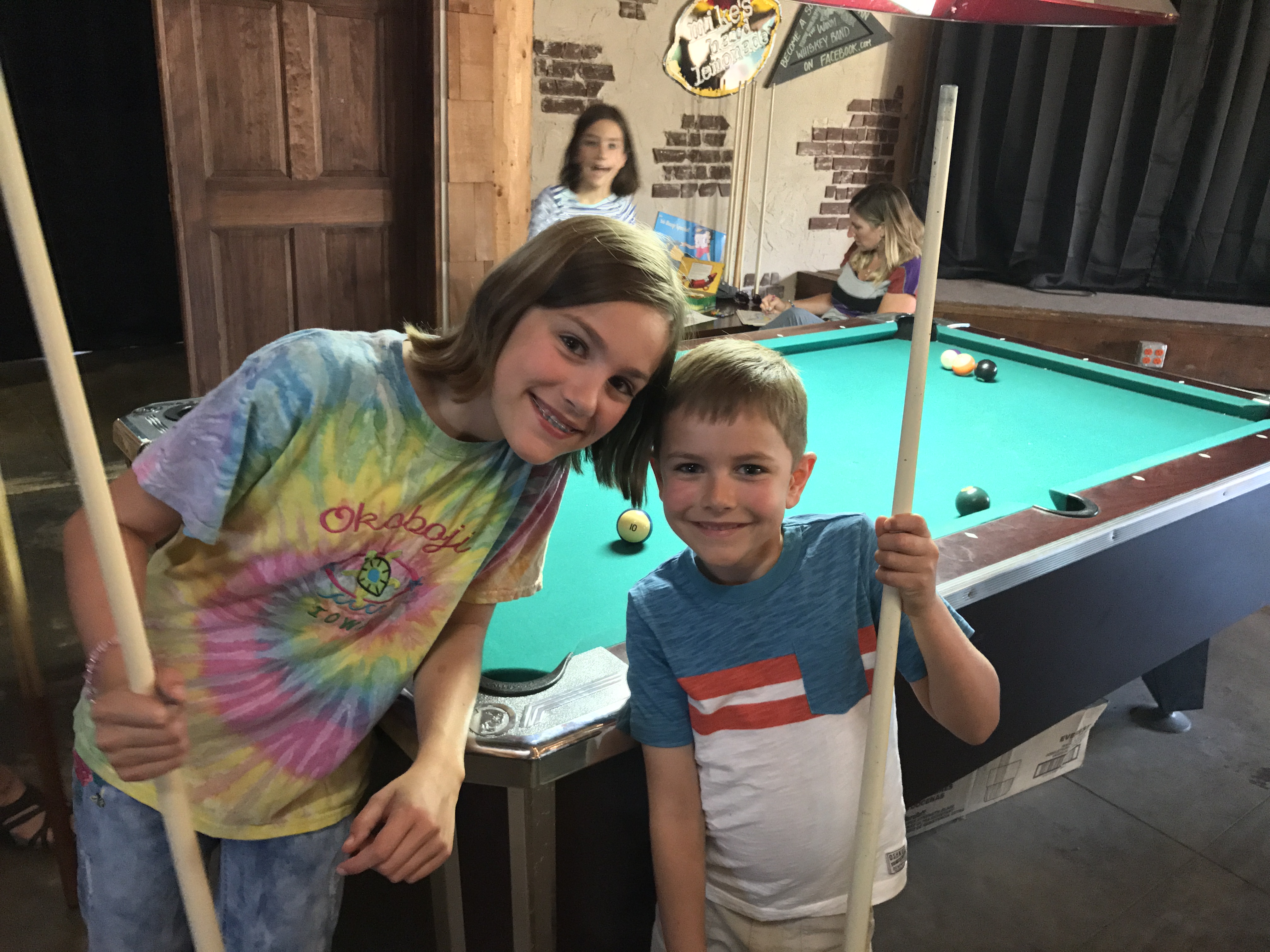 Mandy and Evan playing pool.